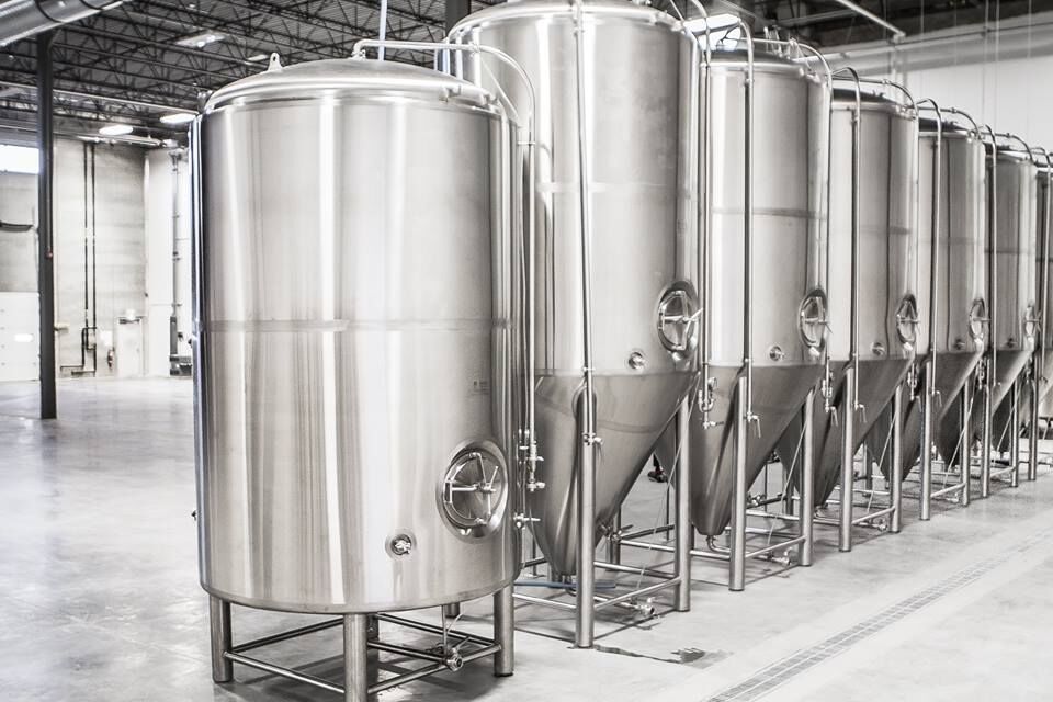 這些不銹鋼罐是發酵容器,用于在過濾、碳酸化和包裝之前發酵和調節啤酒。